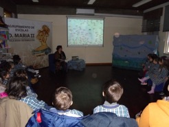 Na passada sexta-feira, dia 12 de fevereiro, as crianças do jardim de infância de Lemenhe visitaram a Biblioteca Escolar da EB D. Maria II. Foram recebidos com carinho pela Professora Bibliotecária, que lhes apresentou a obra “o Nadadorzinho” de Teo Leonni, num ambiente cuidadosamente preparado para o efeito. Esta atividade, vivida com entusiasmo pelas crianças, teve como objetivo motivar o grupo para a continuidade do projeto em curso, no âmbito do PNL, “Ler nos caminhos do mar”.