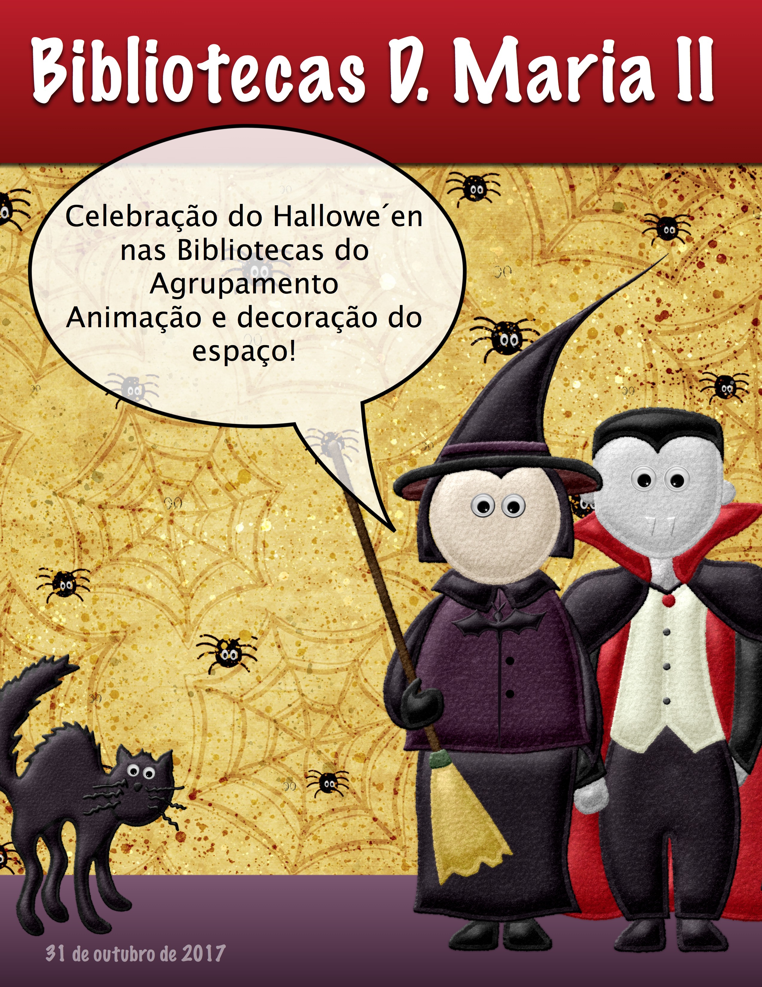 Outubro 31, 2017 bibliotecasdonamariaii Celebração do Hallowe ́en! ;) Partilhar isto: Share on X (Abre numa nova janela) X Share on Pinterest (Abre numa nova janela) Pinterest Partilhar no Facebook (Abre numa nova janela) Facebook Partilhar no Tumblr (Abre numa nova janela) Tumblr Gosto Carregando...