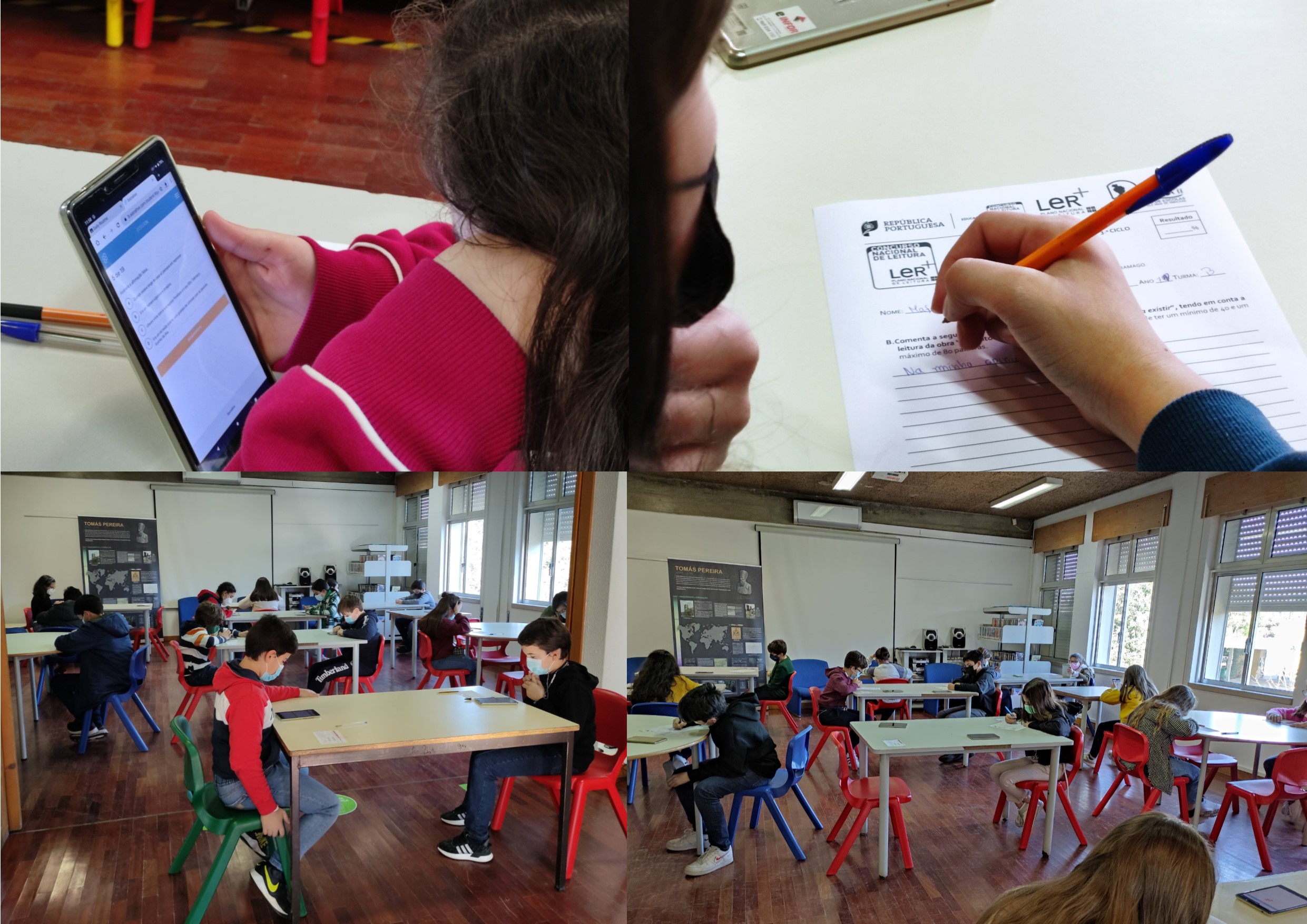 Os alunos do 2.º e 3.º ciclo da EB de Conde de Arnoso e da EB D. Maria realizaram a prova de conhecimentos nas respetivas bibliotecas, assim como as escolas do 1.º ciclo com biblioteca escolar. Os alunos das restantes escolas realizaram-na em espaços adequados.