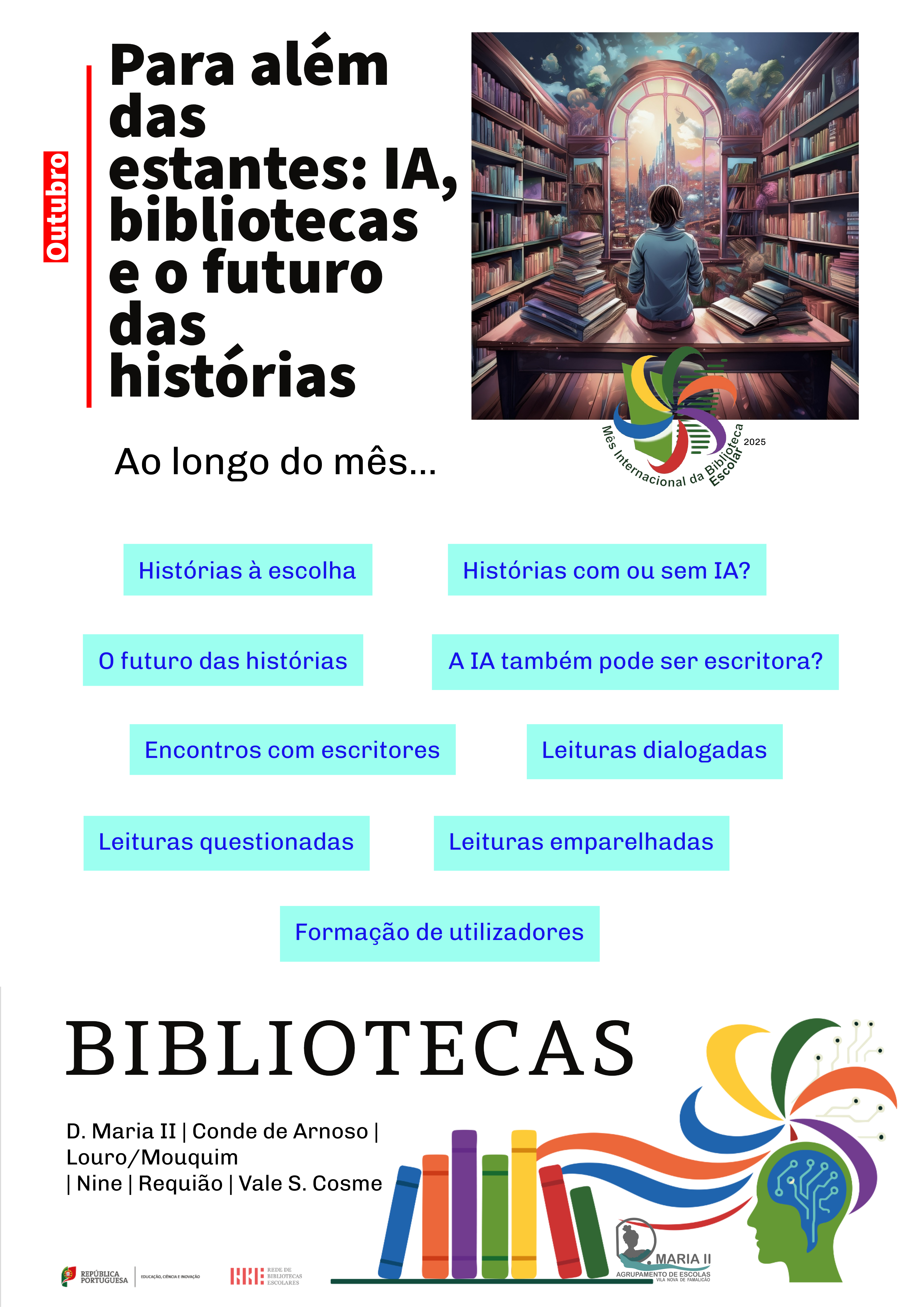 Outubro é o Mês Internacional da Biblioteca Escolar (MIBE), uma celebração anual das bibliotecas escolares em todo o mundo, uma oportunidade para darem a conhecer o trabalho que desenvolvem e mostrarem que não são apenas um serviço, mas um centro nevrálgico vital nas escolas. A chamada à ação é da IASL (International Association of School Librarianship).